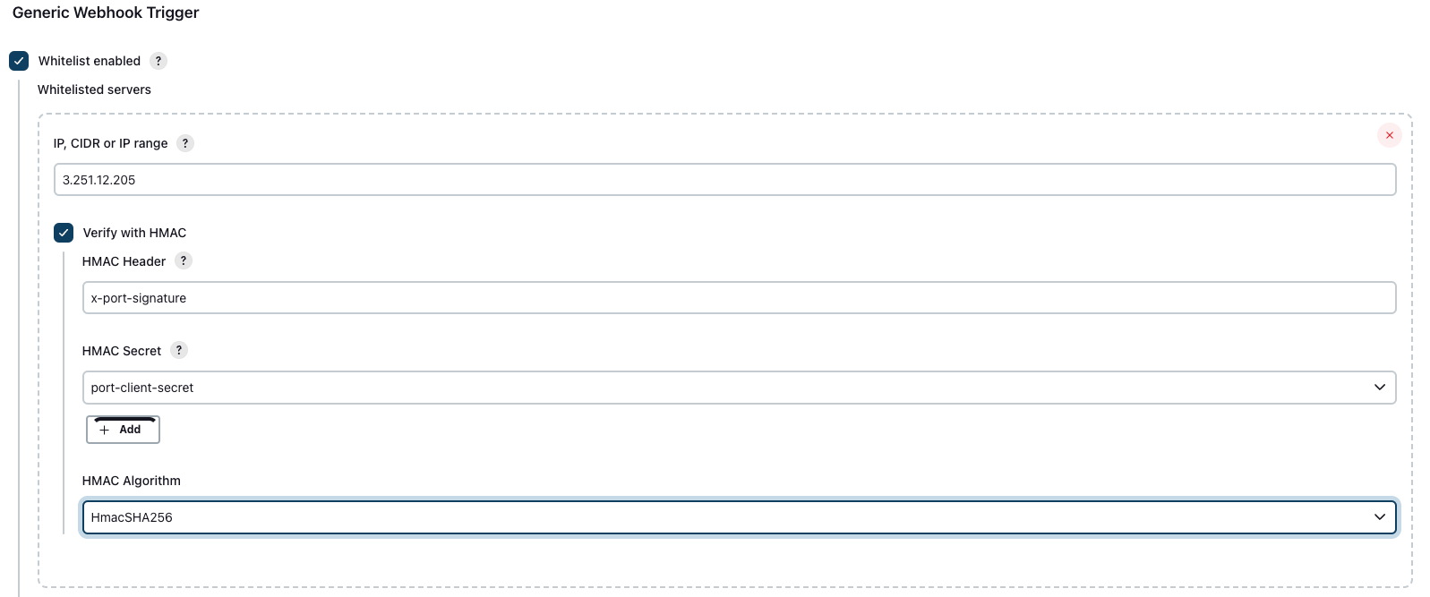- In the HMAC Secret field, choose a secret containing your