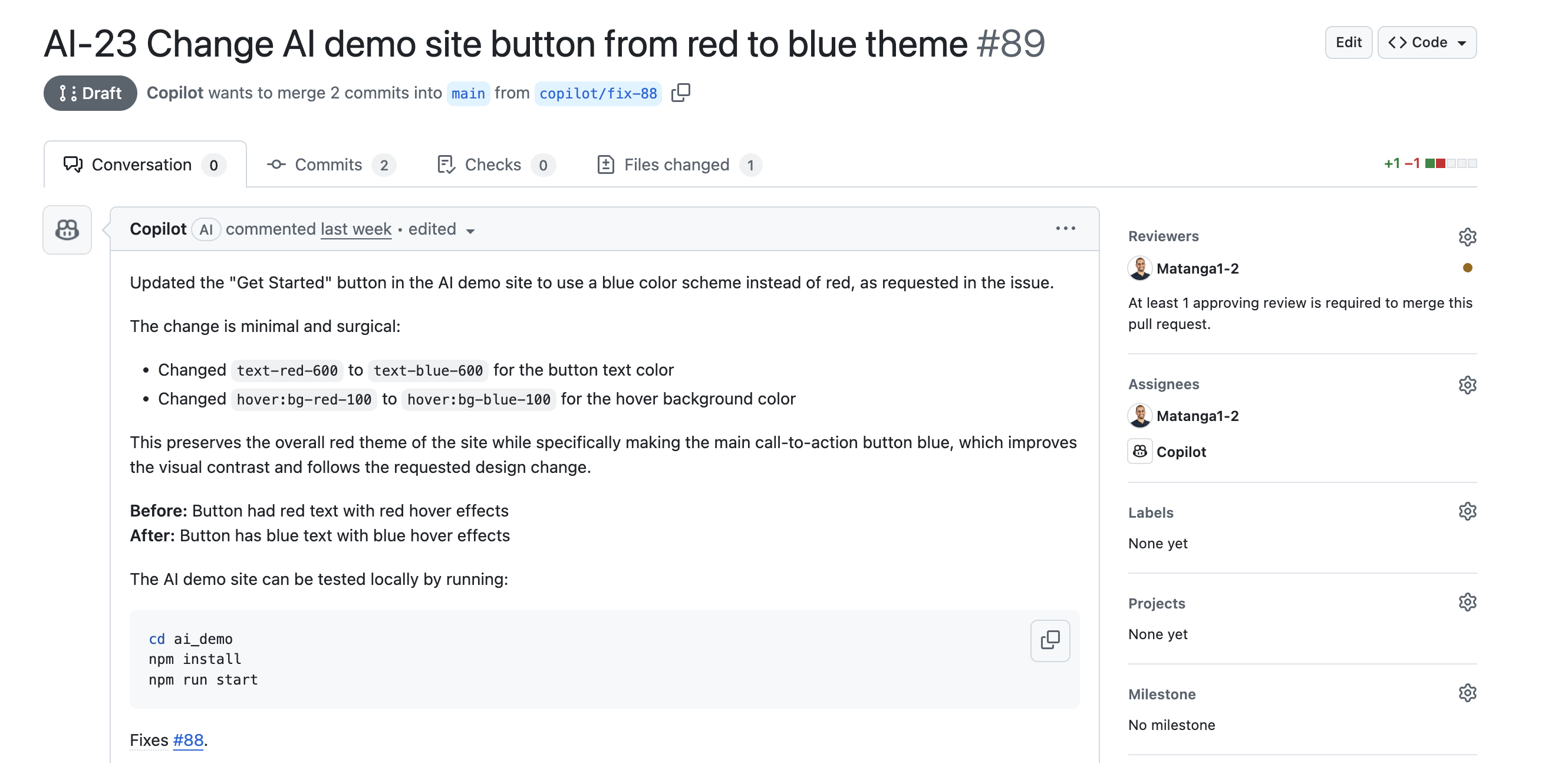 - Verify that the GitHub issue is automatically assigned to Copilot.