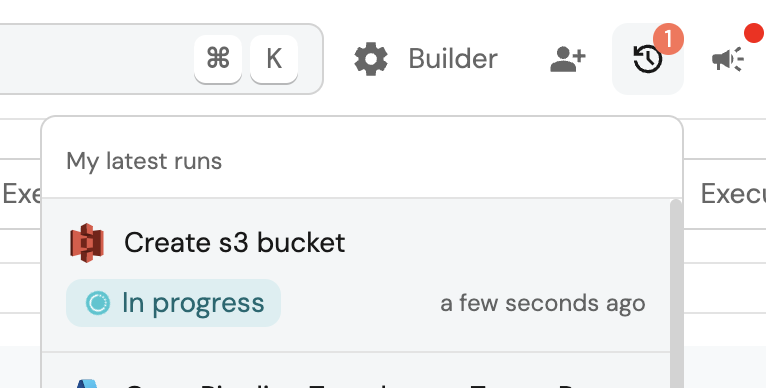 Execute. On the top right corner of the page, click on the action button to view the action progress: