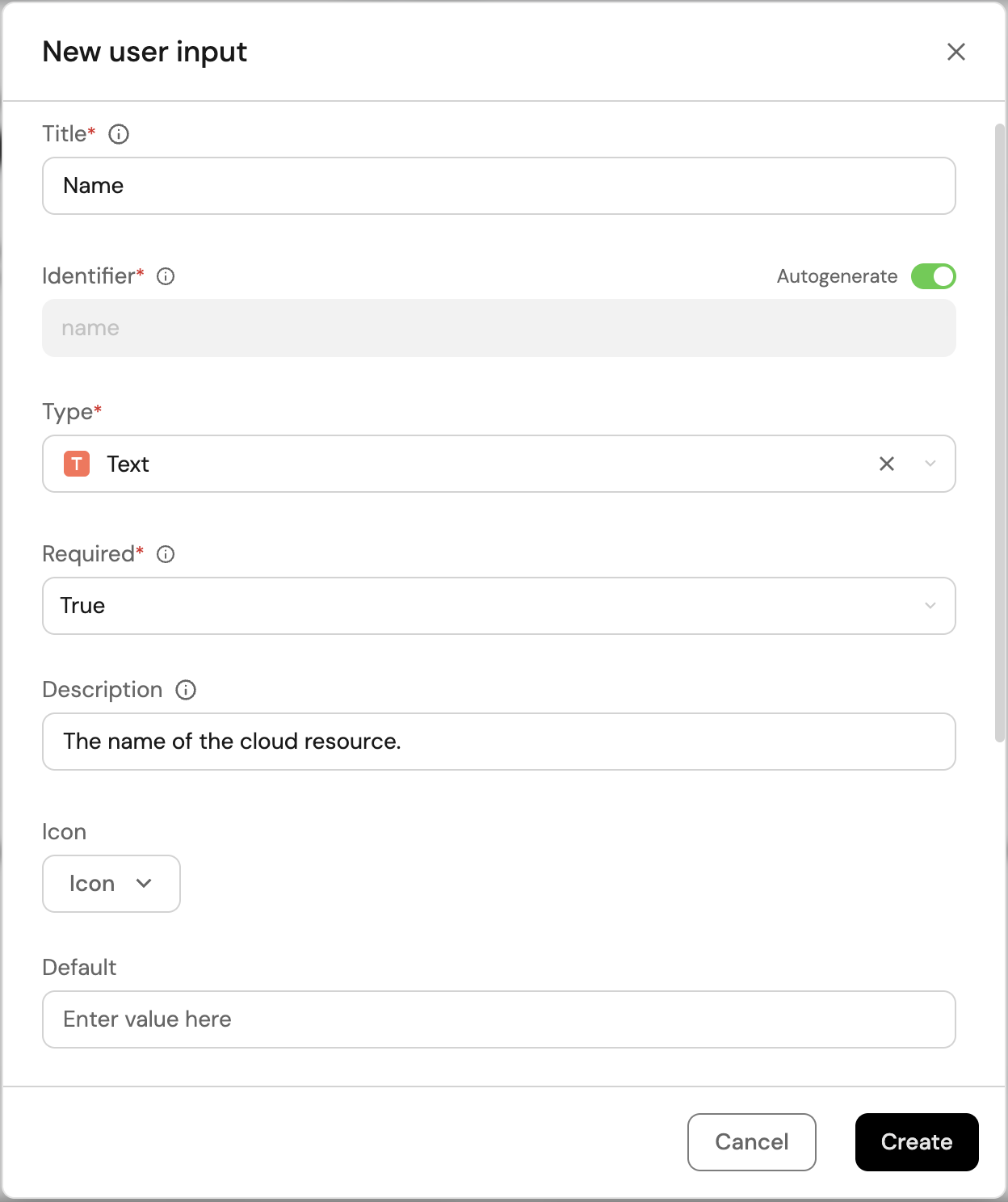 port-actionsfor example), create a file namedcloudResource.tfunder/templates/(it's path should be/templates/cloudResource.tf). - Copy the following snippet and paste it in the file's contents: