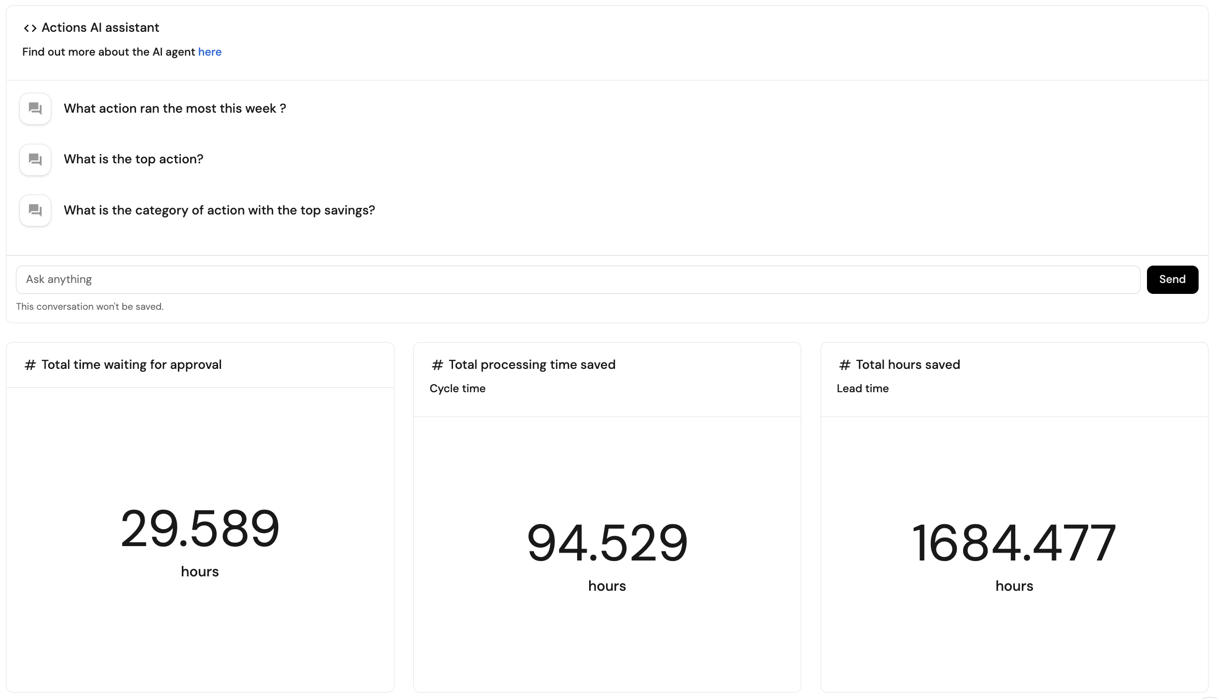 Cycle time before: How long the actual execution step typically took before using actions.