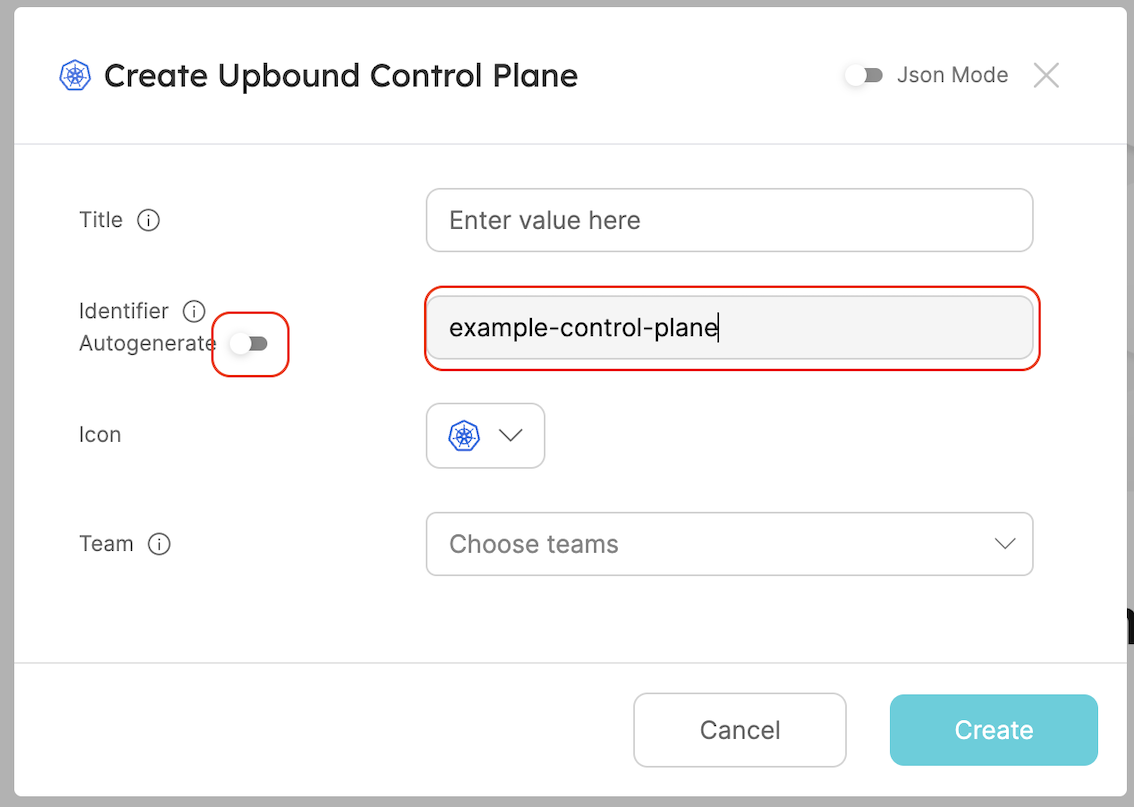 identifierfield, insert the Upbound control planeidentifierwhich we saved earlier and click create (do this step multiple times if there are more than 1 control plane).