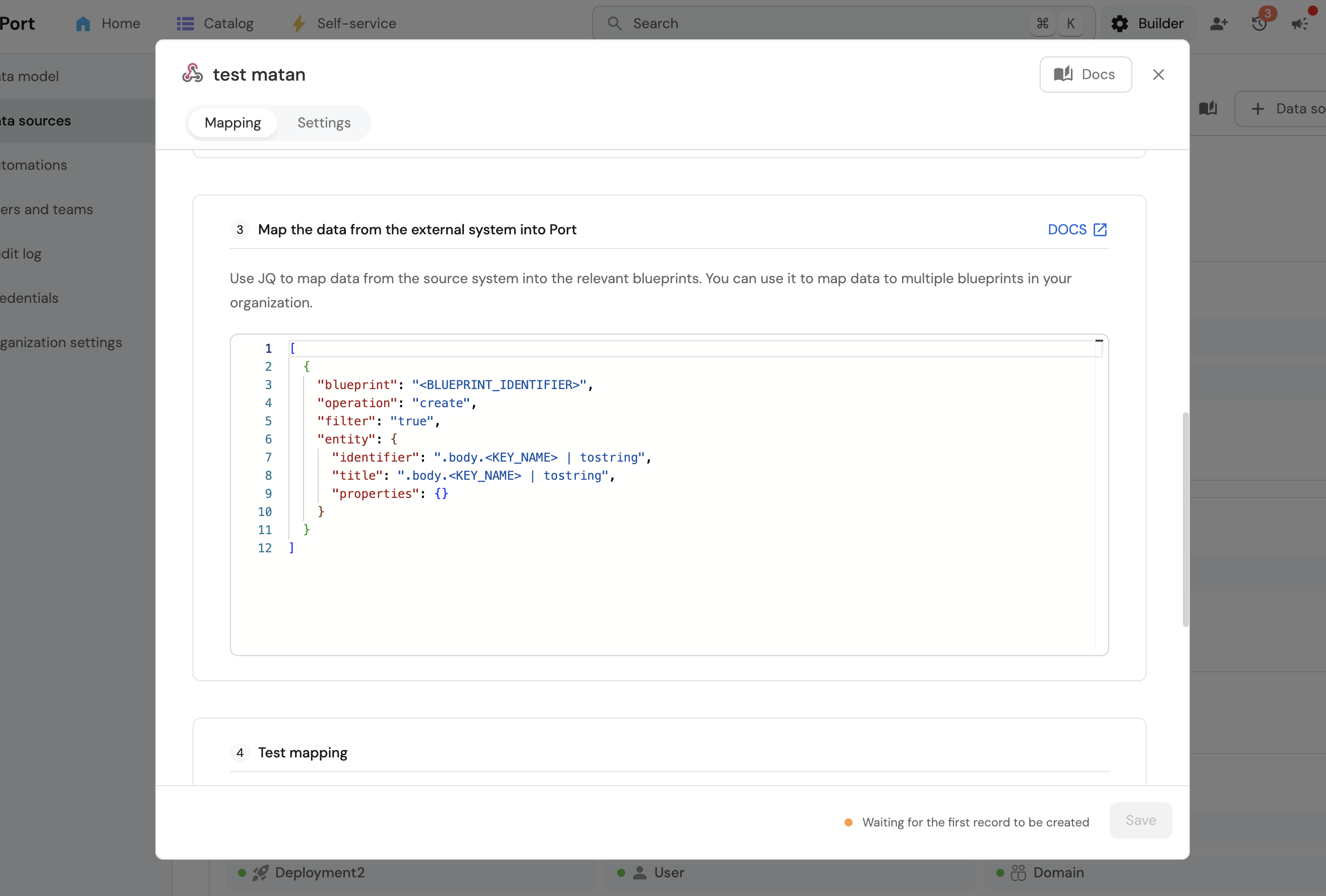 https://ingest.getport.io/abc123). - Add the mappings below in the relevant section on the webhook configuration (see screenshot below).