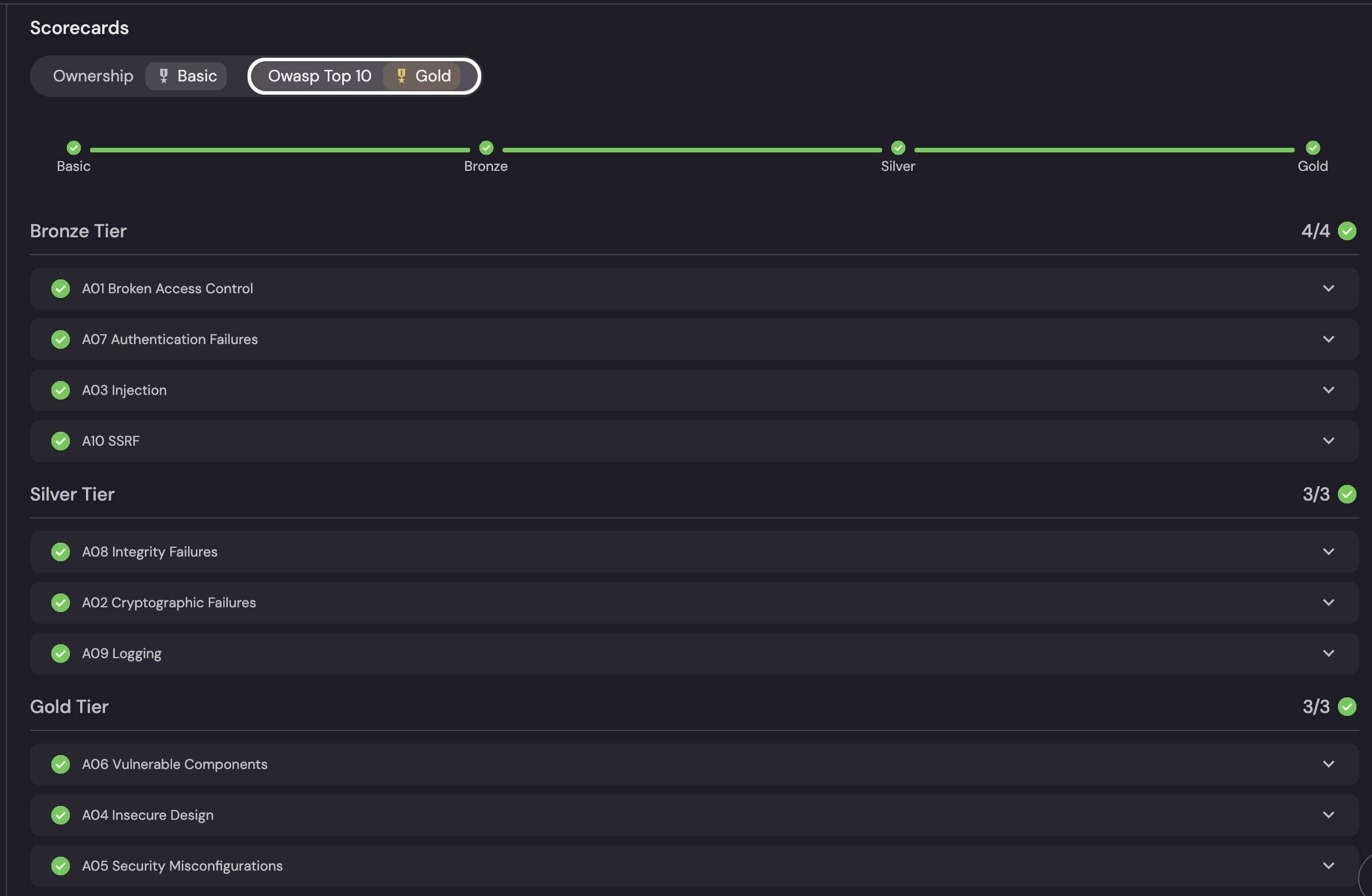 The final step is to create a scorecard that reflects the security maturity of a Respository against the OWASP Top 10 categories.
