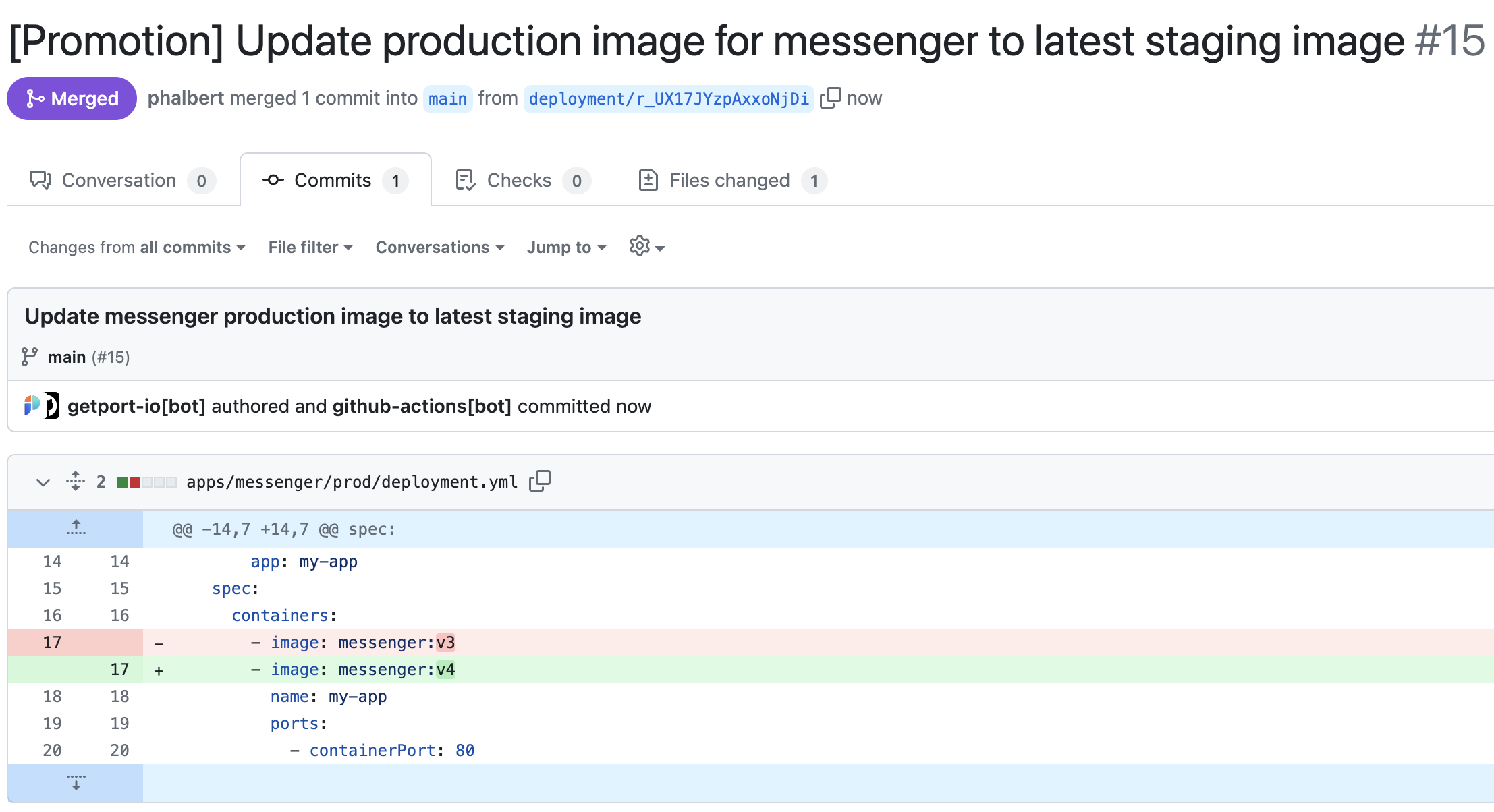 Running Serviceentity in Port is updated to the staging image. - Your production deployment manifest is updated with the staging image in GitHub.