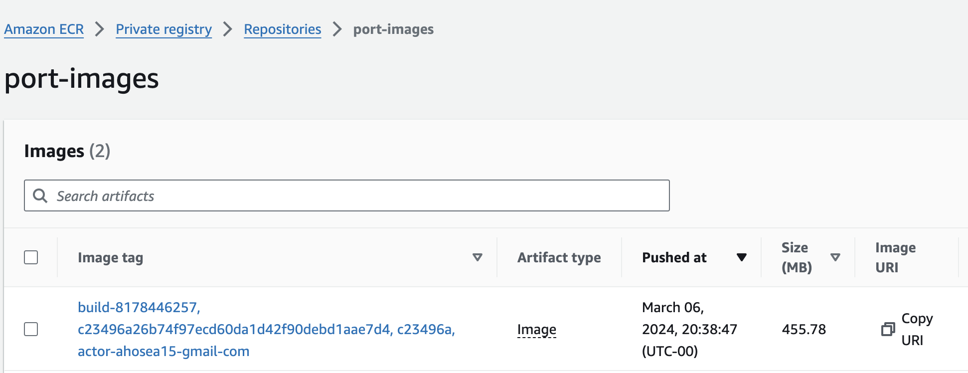 - Create an AWS ECR repository if you haven't already. Take note of your repository URI. This is where the docker image will be pushed.