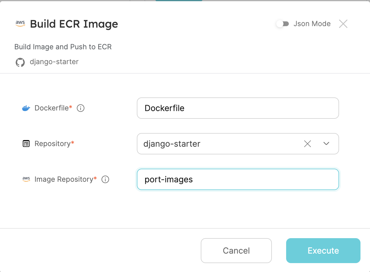 Done! ๐ You can now build and push images for your repositories from Port.