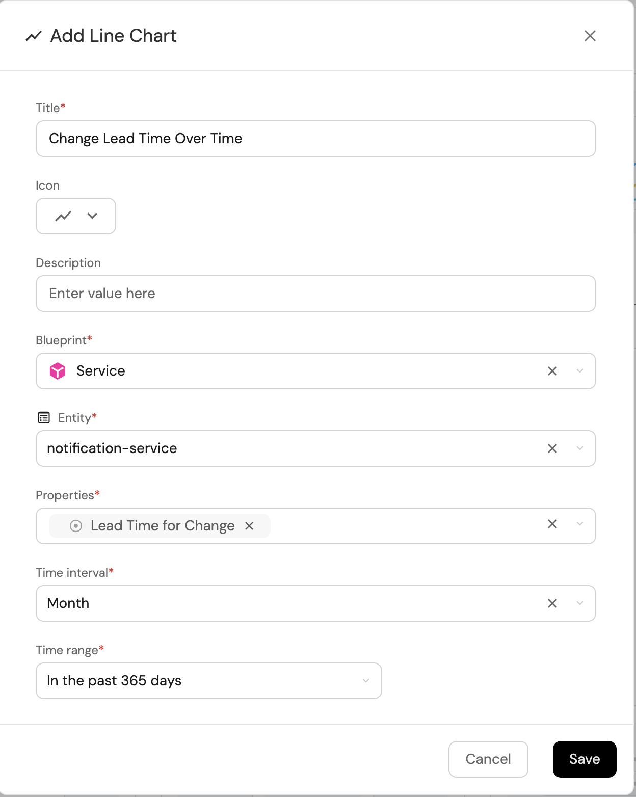 Lead Time for Changes (Hour), (add LineChart icon). -