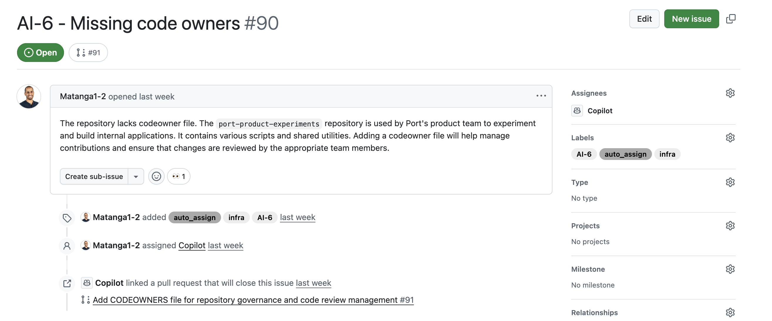 auto_assign_to_copiloton to assign the issue to copilot. - Go to the issue in GitHub and verify that Copilot is assigned.